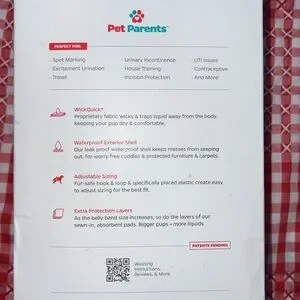 Set of washable belly bands for dogs from Pet Parents. Includes three bands in blue, green, and black new in sealed package.