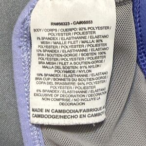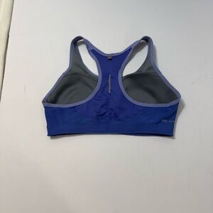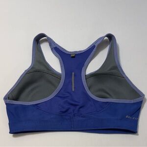 Nike sports bra in lavender and blue. Offers support and style for active wear.