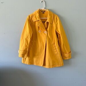 Stylish yellow trench coat by GAP. Features button accents and a sleek design. Perfect for any season.