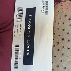 🪻DOONEY & BOURKE | Chic ostrich-textured satchel; also includes strap to wear as a Crossbody | Features a light taupe color with caramel leather accents. Inside features include two front slip pockets, back zipper pocket and slip pocket, also key holder. Feet on bottom. Comes with large Dooney dust bag. AUTHENTIC Bag still in Factory packaging. Perfect for any occasion. NWT