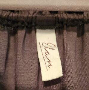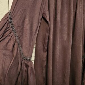 dark dark green almost brown elastic cuffed, very wide bell shaped sleeves blouse. elastic around the neckline and a lace detail in the middle of the sleeve