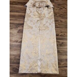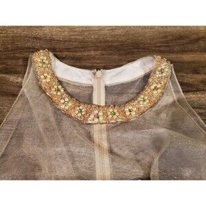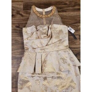 $628 David Meister Women Size 6 Sleeveless Illusion Peplum Gown Dress Gold Cream