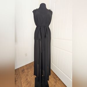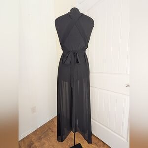 Discover elegance with this chic black maxi dress / beach cover that can be worn many different ways, perfect for any occasion. Its sleek design offers a timeless look.