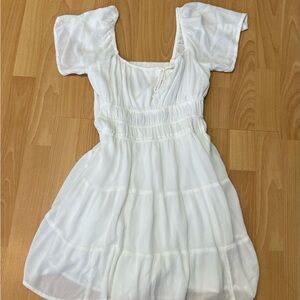 This is a white Hollister dress. It has built-in shorts and is a little backless. On the back it has strips going horizontally across. Great condition.