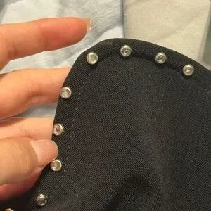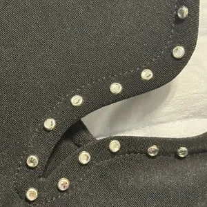 This elegant black dress features a stunning studded neckline, perfect for any special occasion. Its sleek design and thick material offers a flattering fit, making it a must-have addition to your wardrobe.