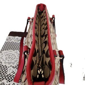 Coach Signature Khaki & Red Leather Medium Handbag Satchel Purse