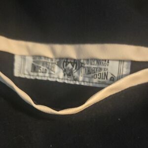 Human Made Men’s Dry-Alls Varsity Jacket in navy wool with premium white leather sleeves. This iconic piece features high-quality embroidery, signature “Dry-Alls” detailing, and the classic streetwear look by Nigo. A must-have for any Human Made fan or collector!
