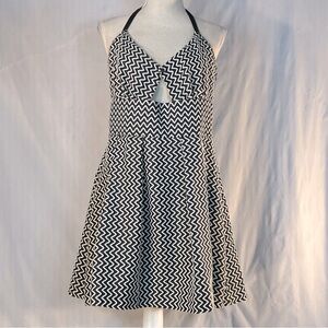 Rachel Rachel Roy Halter Dress Black & White Textured Fit & Flare Pockets Diamond Cut Out Side Zipper
