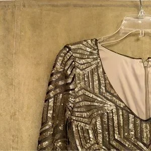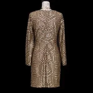 AQUA BRAND GOLD SEQUIN GATSBY LONG SLEEVE MINI DRESS 8/10