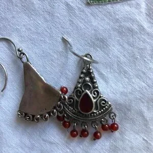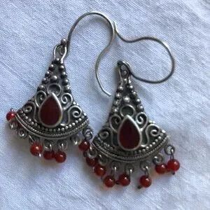 Intricate silver detailing with red stone in bezel with tiny dancing red beads