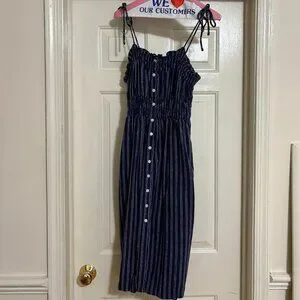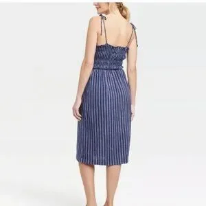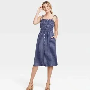 Universal Thread sleeveless linen dress navy stripe, size medium! Has pockets and extremely flattering with the ruching. great for those hot days and to throw a jean jacket or sweater over!