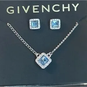 Givenchy Blue and Silver Square Earrings and necklace set