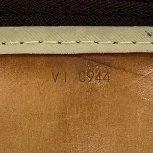 Elegant travel bag with iconic monogram pattern. Features sturdy leather handles and classic design.