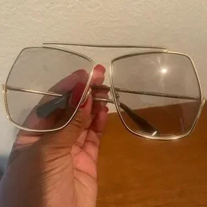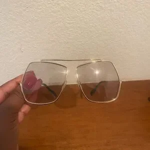Stylish MaxMara sunglasses with gold frames. Unique geometric design. Perfect for a chic look.