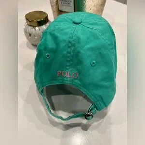 Chic Ralph Lauren baseball cap, aqua featuring pink embroidered logo. Ideal for everyday style. Excellent Used Condition, worn once.