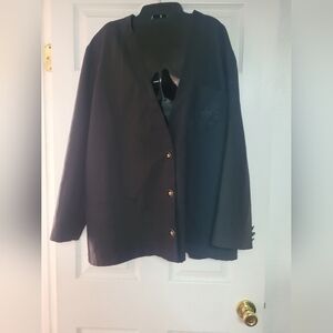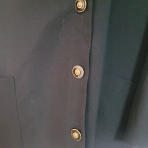 Sophisticated black blazer featuring elegant gold buttons. Perfect for professional and formal settings. From Capecod sportsware size 20