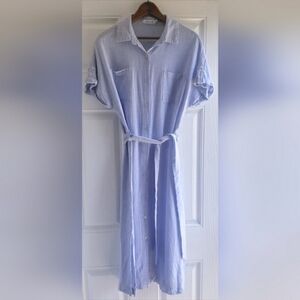 JustFab Linen Dolman Sleeve Shirt Dress Size Large Blue And White Stripes
