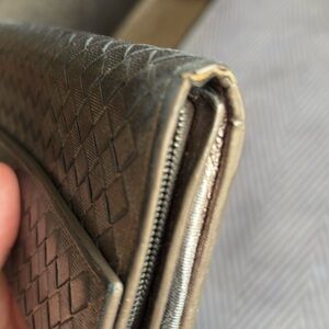 Bottega wallet in preloved condition. Signs of wear and fading. Super soft! Other than exterior fading, and minor corner wear it's in very good condition.