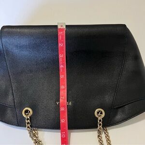 Chic Furla shoulder bag in black. Features elegant gold chain handles. Perfect for any occasion.