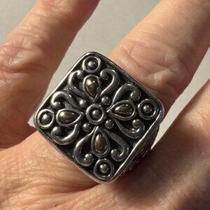Angela by John Hardy Sterling Silver + 14k Gold Square Ring - size 6