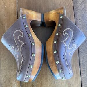 Frye Like New Jessica Clog Leather Slip On Mule w/ Box Brown Sz 6.5 Western Chic