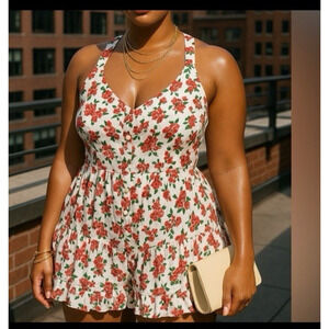 NWT Wild Fable Button-Front Tiered Romper White Floral Women's Sz XS