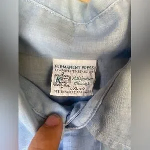 Vintage Kmart Permanent Press Double Pocket Button Front Shirt Lite Blue 70s 80s