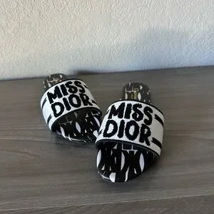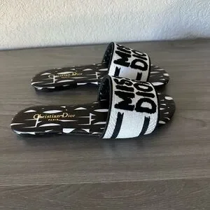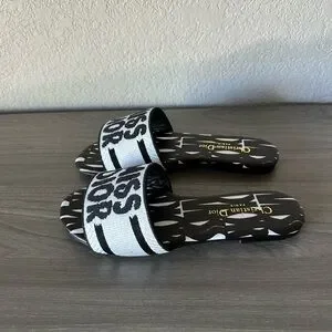 Stylish Dior flats with bold lettering. Comfortable slip-on design. Perfect for casual wear.