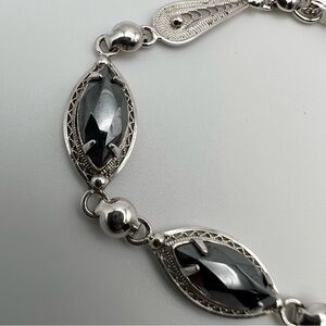 Sorrento Sterling Silver Bracelet Filigree Hematite Stone vintage