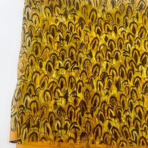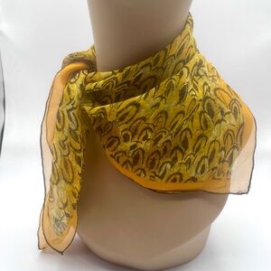 Gorgeous Vera yellow silk scarf with feathered like pattern.