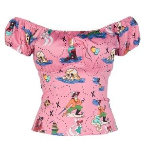 Pinup Couture Neverland Print Peasant Top by Micheline Pitt XS // Extra Small