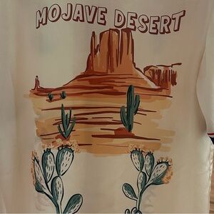 Zara shirt with floral designs. Cream base with blue trim. Thread missing near button (pictured)