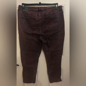 Chic burgundy high-rise denim stretch skinny jeans. Ideal for everyday style. Stretchy material. Fringed cropped hem. New with tags.