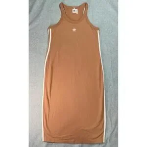 Adidas Womens Dress 1X Brown Tank Racerback Side Stripes Logo Athleisure Stylish