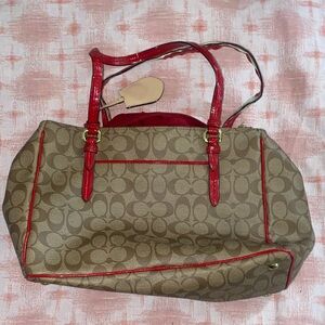 Coach Brown and Red Signature Tote