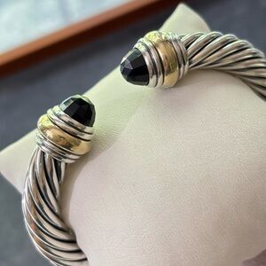 David Yurman sterling silver & 14k gold 10mm classic cable bracelet with faceted black onyx. Excellent preloved condition! Recently cleaned and professionally polished to high shine. This is the newest version available. Retail price $1,600