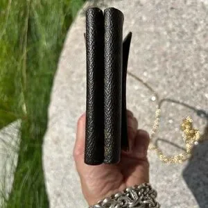 Chic 1990’s Louis Vuitton iconic monogram pattern wallet that has been converted into an adorable crossbody with gold chain.