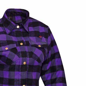 RIDERACT® Women's Motorcycle Shirt Road Series in a stunning purple and black checkered color scheme is made with high-quality flannel fabrics, reinforced with Aramid fiber and comes with complimentary CE standard Armors set. This Women's Motorcycle Shirt is perfect riding gear for a casual road trip, street riding and touring when you want to feel comfortable yet protected on your bike.