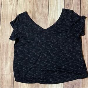 TORRID Black & White Marled V-Neck Cap Sleeve Tee Shirt SIZE 0 = LARGE