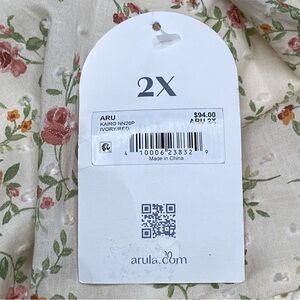 Arula Tiered Maxi Skirt 2X Ivory Pink Floral Eyelet Casual Country Cottage New