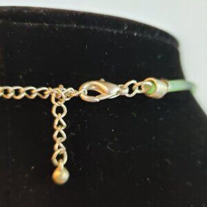 Enamel green trimmed in silver pendant necklace. The chain part is made out of a plastic Tubular necklace.