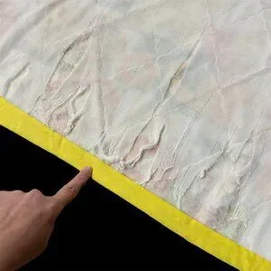 Some wear and fading throughout, a few small stains, and the backing has quite a bit of ripping at the bottom.
