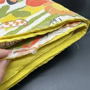 Vintage 1970s Kitschy Handmade Throw Blanket Flower Snail Yellow Orange AS IS