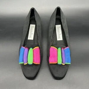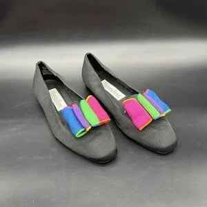 Vintage Womens Flats Shoes Madeline Stuart 1990s Size 6 Black Colorful Bow