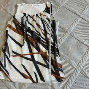 2/$10 New York & Co Tank w/ chiffon overlay Sz S white black & brown pattern