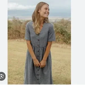 Embrace timeless style with this classic blue checkered midi dress. Perfect for any occasion, this dress offers a flattering fit and elegant design.