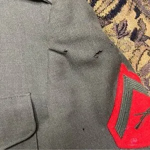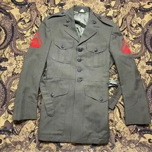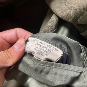 Vtg Military MAN'S WOOL SERGE GREEN Jacket WITH BELT Size 34