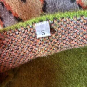 Gorgeous spring green sweater. This vintage-inspired wide-neck sweater is perfect for any day! Retro colors in an eye-catching argyle chevron print make this long-sleeved fitted sweater unique, reminiscent of the pure 70s vibe. Wear this versatile, lightweight sweater with a pair of jeans, a skirt, or shorts for a different look each time. Cotton/Acrylic blend. Very soft, cozy feel.