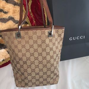 Chic Gucci tote with iconic GG pattern. Stylish and versatile for everyday use.