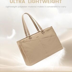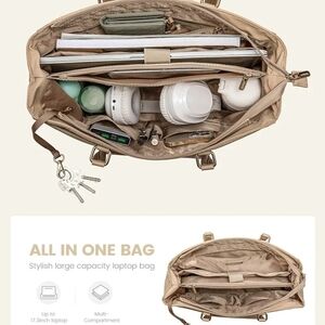 Stylish and practical tote bag in a classic beige color. Ideal for everyday use. Great LOVEOOK school, work, travel bag. They are great bags hold up well. I just got this one and my laptop doesn't it is over the 17.5" I have the bags that go with it. Pre owned normal wear a few marks on it have been using it for travel